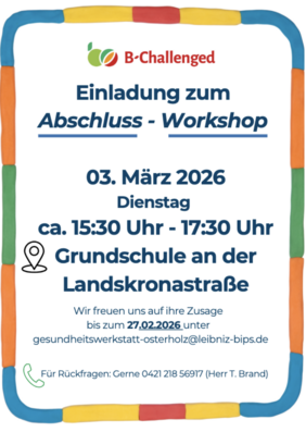 Einladung zum B-Challenged Abschluss-Workshop für Interessierte in Bremen Marßel